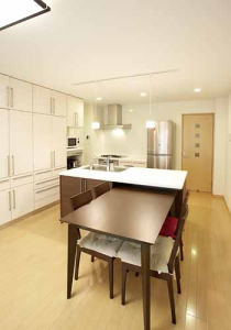 「趣味のお菓子づくりの腕をいかし、このダイニングキッチンでパーティ形式の教室を開くことが夢です」と奥様