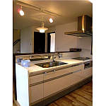 奥様のこだわり、対面キッチン。収納力抜群のキッチンで、家族の笑顔をみながら楽しくお料理ができます。