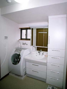 収納たっぷりの洗面所。家族の着替えも余裕で収納できます。