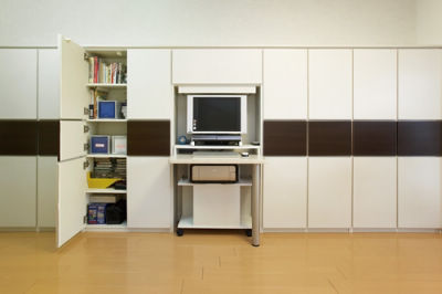 以前のリビングにはモノがあふれていたため、壁一面にシステム収納を採用。その一部にPCコーナーも組み込みました。勉強に集中できる個室とリラックスできる快適なリビングの双方が、受験勉強をしっかりサポートします。