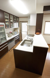 キッチン位置を変えて対面型にし、カップボードも設置して、家事効率を上げました。買った食材等も勝手口から直接運び入れることができます。IHクッキングヒーターを入れるのを機に、エコキュートも導入してオール電化に。光熱費も削減しました。