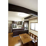 梁とキッチンの色を同色系にして、統一感のある空間に。