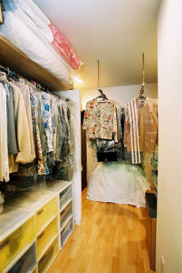 二方向から出入りできるウォークインクローゼット。思い入れのあるタンスも