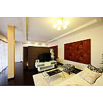 まるでホテルのスイートルームのような空間。ベッドルームとリビングを仕切るのはこのパーテーションのみ。