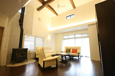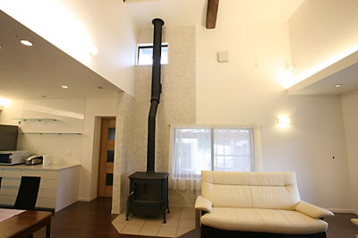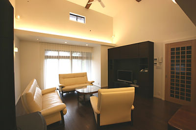 定年後にご夫婦二人でゆったり過ごせるようにと2Fの小屋裏物入れの一部を縮小し、開放感のある吹き抜けにして明るく風通しの良いリビングになりました。
