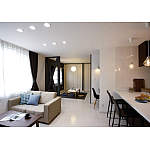 型にはまったプランでなく、自分らしいスタイルで暮らせるようにと考えられたH様。そのために新築でも賃貸でもなく、中古住宅を買ってリフォームするという方法を選ばれました。そうして見つけた築27年の家は、1階が台所、居間、和室2室というひと昔前の間取り。「夫婦でほっこりできる空間に」という夢をかなえるため、間取りから空間を再構築し、自分たちらしさを追求することに挑戦しました。まず、冬の寒さに備えて壁・床・天井の断熱材を入れ替え、窓も断熱サッシへと変更して、基本性能をアップ。ゆったりと過ごすためには広い空間が必要と考え、独立した台所の壁を撤去してリビングとつなげ、和室は畳コーナーに姿を変えながら、リビング空間に取り込みました。キッチンから畳コーナーまでがL字型につながる、広いのびやかなLDK。その畳コーナーには藍色、パソコンコーナーにはレッドの壁紙を選んで、さらに個性的に。テレビで見た藍染め紙を壁に貼った和室が一目で気に入り、「和室は藍色」と決められていたそう。提案された様々なカラーバリエーションの中から選んだのが、北海道の自然を思わせる落ち着いた色の組み合わせでした。「設計者が主張しすぎず、私らしさを引き出してくれました。中古リフォームならではの高い自由度で実現した広い空間は、居心地がよいですよ」と話されています。