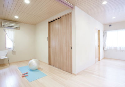 洋室横のコーナーは、ご主人のお気に入りの場所。運動用具を使って体を動かしたり、