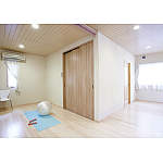 地盤沈下のため、リフォームから建て替えへの変更を決断されたH様。ご夫婦でゆったり過ごすシニアライフの場に求められたのは、無駄なスペースを減らしたコンパクト設計。「明るく風通し良く、家事の負担を減らせるように」というご要望の下、計画が始まりました。新たに基礎をつくり直し、耐震性をまず建物の足元からしっかり補強。隣家と近接し日中光が入りにくかった1階は、南面に配置したLDK全体を吹き抜け構造に。2階は必要最小限の間取りにすることで、開放感あふれる大空間を実現しました。天井にはトップライトを2カ所設置。ここち良い光の溜まり場と風の通り道をつくり出したLDKと2階のフリースペースは、ご夫婦が休日を過ごす、それぞれのお気に入りの場になりました。玄関は北入りから東入りに変更し、LDK・寝室と直結。長い廊下をなくし生活動線・家事動線を短くすることで、日々の暮らしやすさを実現しました。ご高齢になられても対応できるよう通路を広く、建具はすべて引戸に。また寝室周りにはトイレ・浴室を使い勝手よく集約。壁を抜けば1室にできるよう配置も工夫しています。