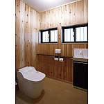トイレも無垢材であたたかな雰囲気に。おそうじラクラクのアラウーノSを採用しています