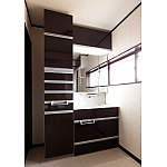 たっぷりの収納を設けているので、洗面室はいつもすっきり