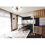 築29年を経て水廻りの老朽化が気になっていたM様ご夫妻。暗かった台所は、間仕切りを撤去することで、明るく開放感のあるLDKとなりました。構造上抜けない柱は、以前、和室にあった障子を再利用して、空間をゆるやかに仕切るデザイン壁に。長年愛用してきた食器棚は塗装し、上段は飾り棚に、下段はキッチンのハッチカウンターとして生まれ変わりました。家具やキッチンの扉はエクセルダーク色でまとめ、和モダンな雰囲気を演出。愛着ある家具に囲まれた、心落ち着く二人のくつろぎの場所ができあがりました。