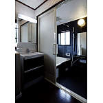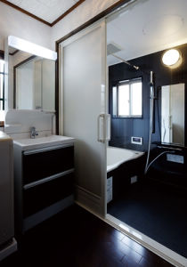 洗面ドレッシングもエクセルダーク柄で統一。エレガントなサニタリー空間となりました