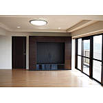中古マンションを購入して、全面的にリフォームされたS様。明るい色の床材に変えてイメージを一新したリビングの壁面には、たっぷり収納できる「キュビオス」を設置。さらに、キッチンにも使い勝手の良い家電収納や食品庫などを設置しました。また、家電収納の背面にできた空間をリビング側に取り込み、飾り棚として有効活用。まるでオーダーマンションのような使いやすい住まいになりました。