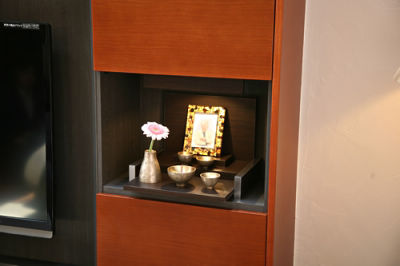 以前飼っていた愛犬の仏壇。 キュビオスにぴったり収まる商品です。