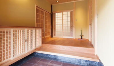 無垢材の玄関は、華道の先生である奥様のお花を飾るのにピッタリ。
