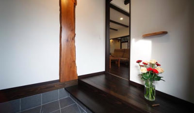 玄関を入って目にする立派な梁が、家の風格を印象づけます。