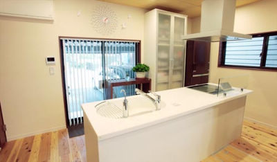築31年の中古戸建を購入したM様は、建物本来の質の良さに注目し、新旧を融合させた再生リフォームに挑戦。「自然な温かみ」をテーマに、外装や内装の素材を厳選しました。天井と壁の一部にシナベニヤを、床には杉板を使い、優しい温もりのある部屋に変身したリビング。自然と家族の笑顔が集まります。撤去できない壁を小窓のある収納スペースにしたアイデアも秀逸です。水廻りはすべて最新設備に取り換え、キッチンはアイランド型の採用により、明るく開放的なスペースに生まれ変わりました。