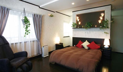 間仕切り壁でベッドルームとクローゼットコーナーを明確に。