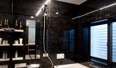 落ち着いた雰囲気の浴室は、「シックで素敵」とお客様に評判です。
