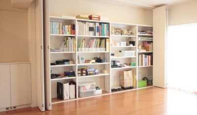 収納棚に扉をつけることで目隠しになり、お部屋はいつもスッキリ。