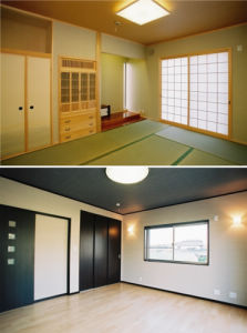 上≫北側の優しい光が床の間から差し込む大壁の和室 下≫大きなクローゼットのある落着いた個室