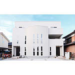 限られた面積を有効に活かすため、3階建てのテクノストラクチャー工法を採用。正面の外壁は印象的なR壁設計に。1階のお施主様世帯のフロアは、テクノストラクチャーならではの約26帖の大空間LDKが実現しました。赤のキッチンがピアノの色とマッチし、見た目にも美しいハーモニーを生んでいます。上質感のあるギャラリースペースはひときわ目を引き、多趣味なT様にふさわしい仕上がりに。「親しい友人を集めてミニコンサートを開くのが夢だったんです」と、理想のライフスタイルにぐっと近づけたご様子でした。