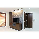 お子様の成長に伴うライフスタイルの変化をきっかけにリフォームされたM様。老朽化した設備を最新の省エネタイプに変更するなどの機能面に加え「シンプルで高級感のあるインテリアに統一したい」とのイメージを形にしました。 そのイメージ通り、室内はダークブラウンの建具やインテリアを基調にトータルコーディネート。調光のできるLED照明や間接照明による演出が、シックな空間をより優雅に演出します。また、対面タイプのキッチンや洗面まわりのレイアウト変更など、水廻りの動線もすっきりとリニューアル。レストルームとして生まれ変わった洗面所は、仕切り壁のボルドーレッドがアクセントカラーとなり、高級ホテルのような仕上がりです。統一感のあるインテリアに暮らしやすさがミックスされ、贅沢な時間が流れる住まいになりました。