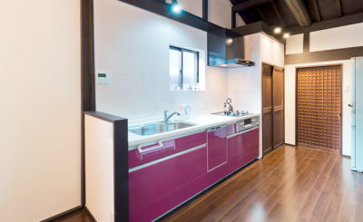 収納が少なく片付かなかったキッチンには、しっかり収納スペースを確保。現代の使いやすさと京都らしい趣きを活かした古民家の再生に「思っていた以上に素敵です」と、笑顔で語るO様でした。