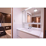引出しタイプの収納で下段にはバケツなどの掃除用具もすっぽり入る。ツインラインLED照明で顔に影ができにくい。