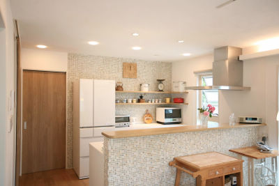 ※写真のモザイクタイルは現場調達材です。