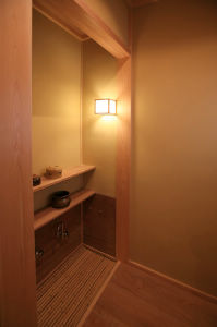和室の奥に設けた水屋。和室には炉もあり本格的な茶室になった。