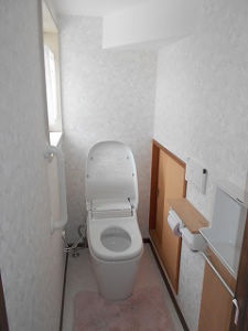 狭い浴室と洗面所をほんの少しの増築でそれぞれ1坪に改築でき、空間が広がった。既存のトイレは昔ながらのタイル貼りであった為、クッションフロアーに替え、アラウーノを採用したことで、お掃除が楽に。