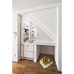 階段下のスペースを効果的に使った、技アリの洗面台。