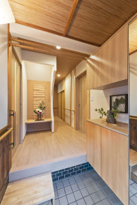 和風でナチュラルな雰囲気が訪れる人をお出迎えする玄関スペース。