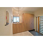 壁一面を利用した大容量の玄関収納ですっきり。