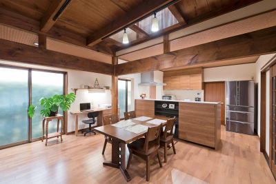 H様邸は、昭和初期に建てられた築85年の大きな和風建築。風格漂うこの家を「建て替えず、ずっと住み続けたい」とのご希望から、もともとあまり使われていなかったという北側の2室と縁側をLDKに間取り変更なさいました。「独立していて使いにくかった」と奥様が語るキッチンは、見通しのよい対面タイプへ。収納も増え、使い勝手がぐっと良くなったそう。