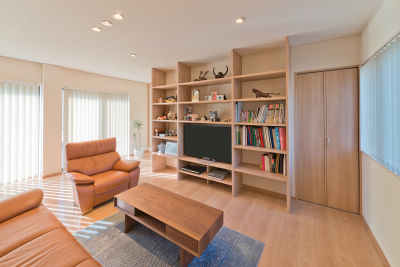 そこで、鉄骨造の家の1階部分、駐車スペースを改装し、新たな「集いのリビング」を提案。15.7帖というゆとりの広さで、家族が集まって楽しい団らんのひと時を過ごせるようになりました。またリビングの壁一面には、奥様の念願だったという収納棚(アーキスペック収納)をデザイン。思い出の品や写真などを飾れる「見せる収納」で、お部屋もスッキリとした印象に。その品々を眺めながら家族の会話にも花が咲き、「今までにない団らんの部屋になりました」と嬉しそうに語るM様です。