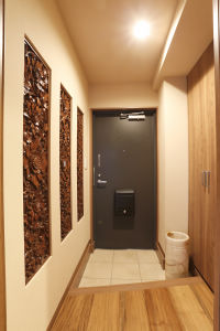 大きな収納や透かしのレリーフによって、玄関も開放的に。