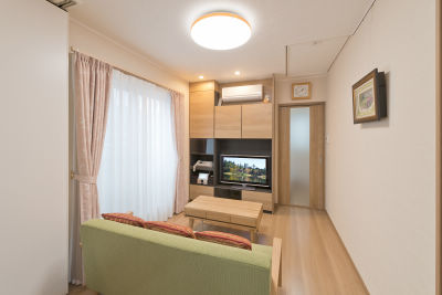 「将来的に安心して住める家にしたい」と建替を行ったT・K様。そこで、もっとも長い時間を過ごすLDKや水廻りを1階から2階へと大胆に間取り変更。陽当たりも抜群で、風通りもよい住まいに生まれ変わりました。「最初は2階にリビングというのは想像できませんでした」と語るT・K様ですが「住んでみるととても快適。この間取りにして正解でした」と、満面の笑み。足元に設置した床暖房のおかげで、冬場でもぽかぽかと暖かく、1年を通じて居心地のよい空間です。