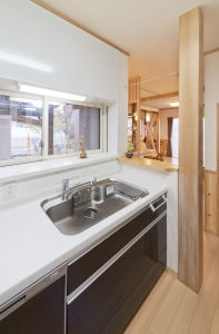 リビングの気配が感じられ、ほどよい距離感が心地良いキッチン。