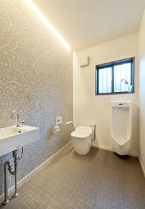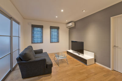間接照明とアクセントクロスが上品でシックな空間を演出。