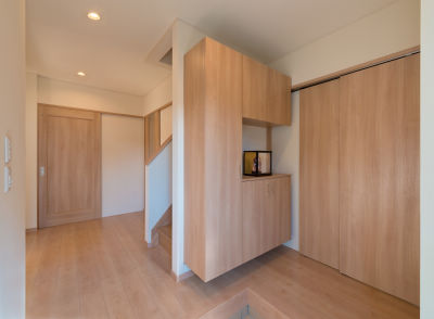 そこで、鉄骨造の家の1階部分、駐車スペースを改装し、新たな「集いのリビング」を提案。15.7帖というゆとりの広さで、家族が集まって楽しい団らんのひと時を過ごせるようになりました。またリビングの壁一面には、奥様の念願だったという収納棚(アーキスペック収納)をデザイン。思い出の品や写真などを飾れる「見せる収納」で、お部屋もスッキリとした印象に。その品々を眺めながら家族の会話にも花が咲き、「今までにない団らんの部屋になりました」と嬉しそうに語るM様です。