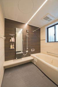 その他にも、リビング壁面のアクセントウォールには、杉板を加工した上質感漂う工夫。ライトアップすると、丁寧に彫られたひとつひとつの模様がさざ波のような陰影をつくりだし、幻想的で美しいリビングを演出してくれます。