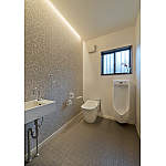 その他にも、リビング壁面のアクセントウォールには、杉板を加工した上質感漂う工夫。ライトアップすると、丁寧に彫られたひとつひとつの模様がさざ波のような陰影をつくりだし、幻想的で美しいリビングを演出してくれます。