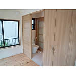 南西の洋室は介護が必要になっても使いやすいように考慮してあります。、トイレ、洗面、浴室に車いすでも移動できます。主に生活するLDKからも出入りできる間取りに変更しました。