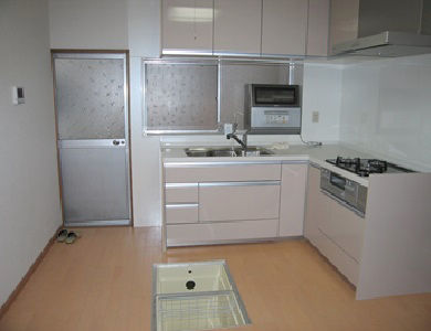 白蟻被害でキッチンと洗面脱衣室の床がひび割れ、抜けていた事もあり床下からの改修・防蟻処理をしました。浴室はユニットバスに交換して安心して生活出来る水廻りにしました。