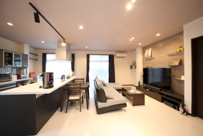 シックモダンなテイストを崩さないよう、照明はダウンライトを採用。複数のダウンライトはリビングライコンで簡単に切り替えが出来ます。
