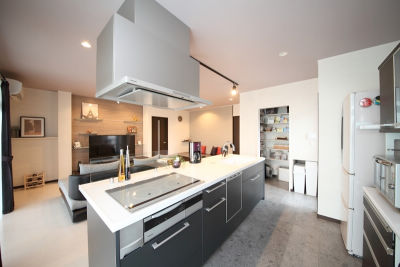 大人数でも調理可能なアイランド型は来客時には効果的な演出も可能。キッチンもインテリアのひとつとして重要視しました。