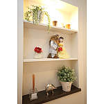 ニッチのディスプレイも華やかにライトアップ。あたたかな光で迎え入れてくれます。