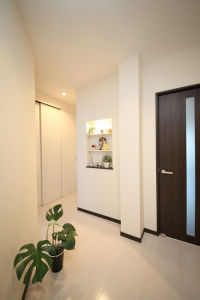 3階建ての建物の1階でご両親様とお店を営むお施主様。歳を重ねられたご両親様との同居を始める為に、今まで使っていなかった3階部分を利用した二世帯化リフォーム。「水廻り設備を全て分けたい」という二世帯住宅ならではのご要望には家事動線を配慮した間取りに最新の設備を配置することでお応えしました。また、家の周りをぐるりとバルコニーに囲まれている為、心配されていたのが「夏の暑さと冬の寒さ」。対策として、日当たり・風通しはそのまま損なわず、断熱材の入替とLow-E複層ガラスの採用で断熱性を高めました。そして、内装はお施主様ご夫妻のお好みの「シックモダンなインテリア」。キッチンなどの住宅設備・扉・家具はダーク色で統一。細部にも、こだわりを詰め、大満足な仕上がりになりました。